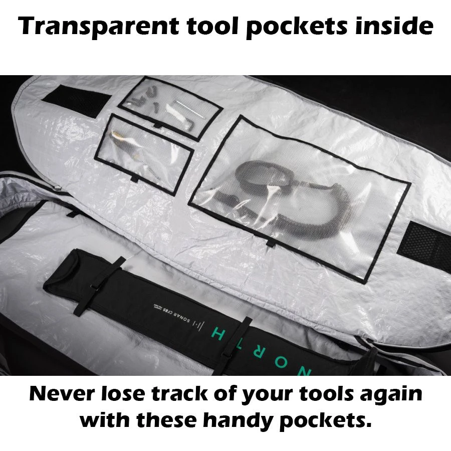 Wingboarding is an investment and the Star Wingboard Boardbag will protect your investment from dings, dents, and too much sun while transporting or waiting for the wind to come up. A sturdy construction with carrying handle for easy transportation and heavy duty zippers to ensure easy access and closure. If things are getting heavy you can take a rest and put down your bag on the floor without having to worry your goods get damaged. The 8mm padding will Help prevent damage and offer your board a cushy ride to and from the water. Keep everything protected and in place with these removable pockets. If you want to save some weight you can always leave them out. The Extra large air vents integrated in the fabric will help keep your gear in the best condition, even when it’s still wet.